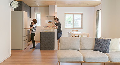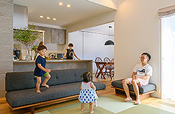 ヌックスペースとリビングで家族団欒を愉しむ