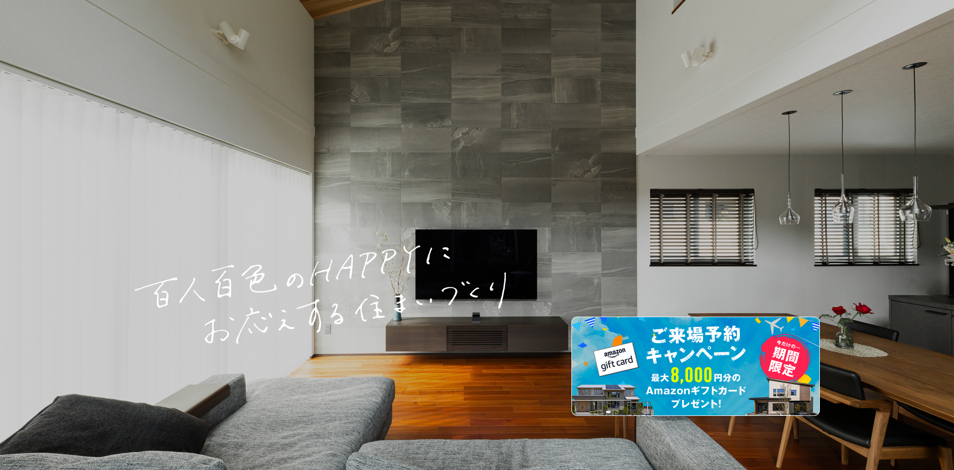 百⼈百⾊のHAPPYにお応えする住まいづくりを実現します。