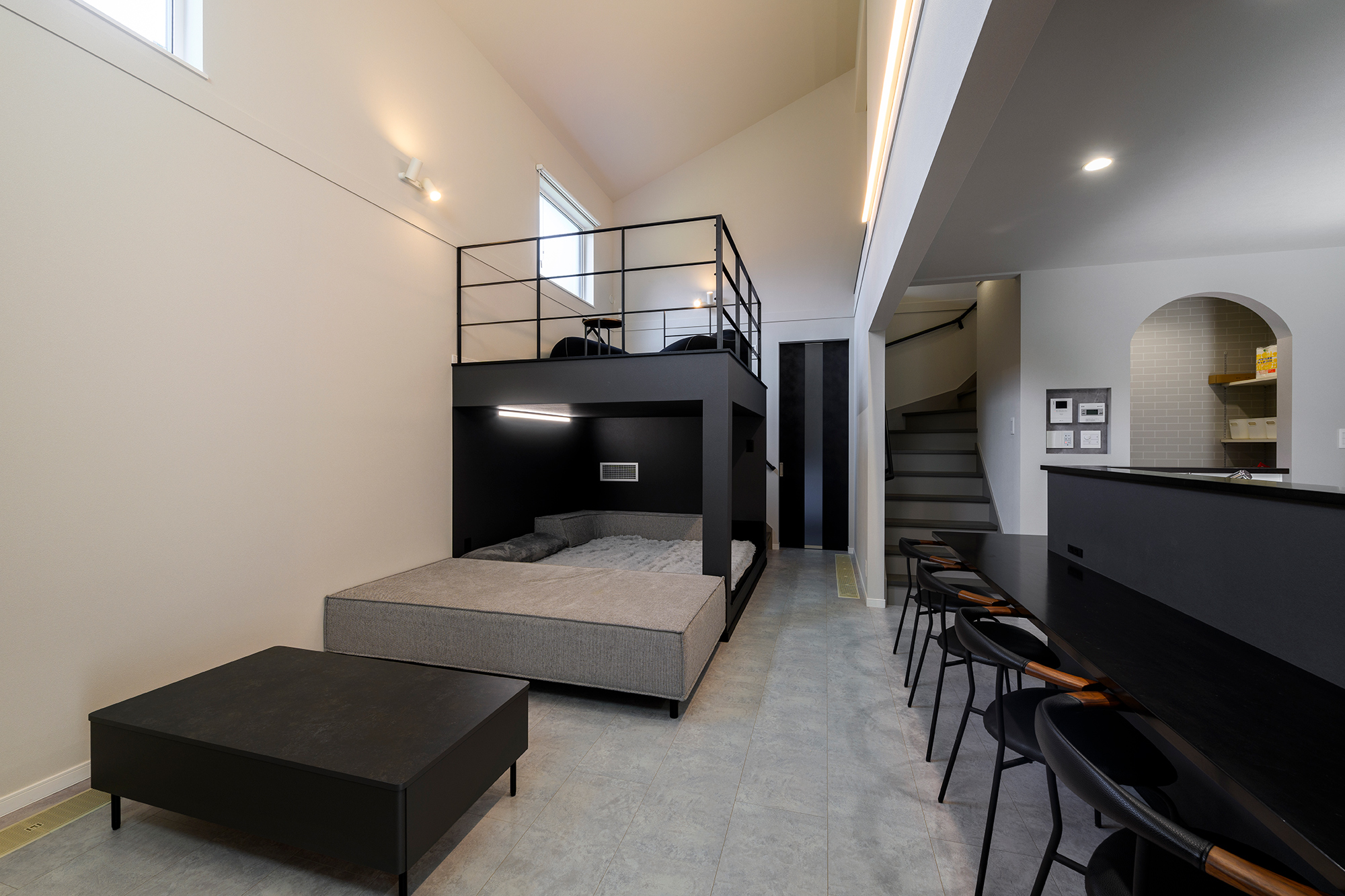 中心に中二階を置いた、縦空間が緩やかにつながる住まい【エルクの杜】