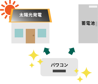 太陽光で作った電気を蓄電池に貯めて、貯めた電気で家電製品を使えば、日々の生活にも利用できます。