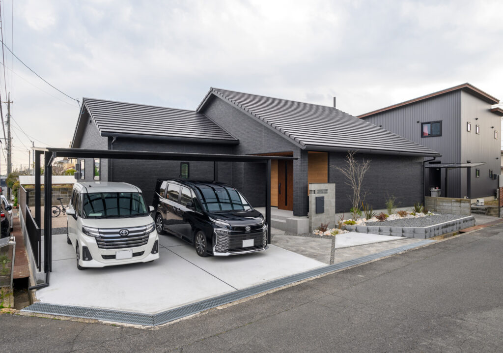 山口県や広島県で家を建てて4人家族で暮らす場合、ご夫婦それぞれの車で2台所有するケースが多く、エクステリアを検討する時もまずは2台分以上の駐車スペースの確保が大切です。おすすめは、雑草が生えにくくて掃除も楽なコンクリート仕上げ。雨の日の泥はねも防げるので、玄関まわりが汚れにくいのも嬉しいポイントです。