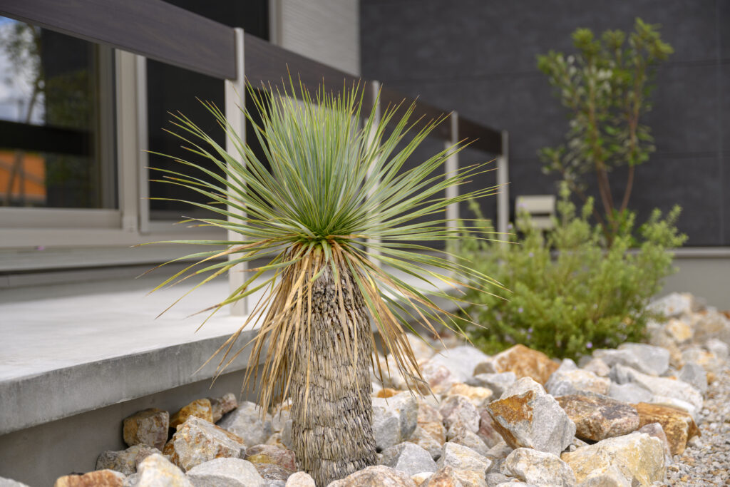 個性的な葉や花の木が多く洗練されたモダンな印象を与え、乾燥に強く水やりが少なめでも育つ植栽は、忙しいライフスタイルを送る方にもおすすめです。