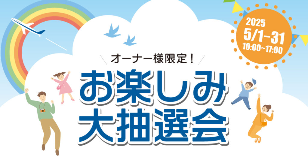 エルクホームズでは5月1日~31日の営業期間中、各展示場にて【オーナー様限定!お楽しみ大抽選会】を開催いたします。