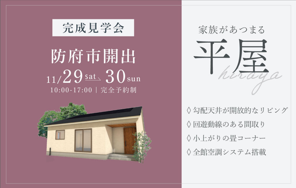 11/29~30 防府市開出にて【予約制】完成平屋見学会開催!