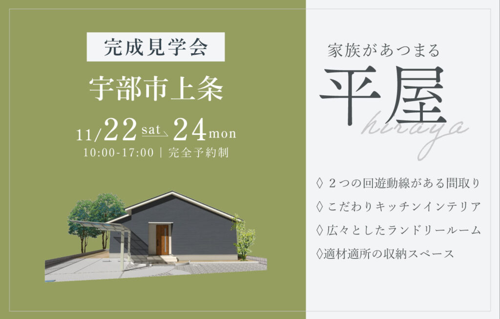 11/22~24 宇部市上条にて【予約制】完成平屋見学会開催!
