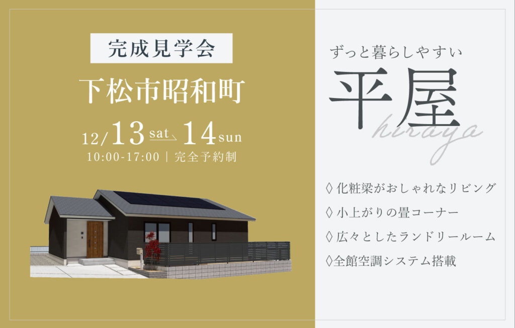 12/13~14 下松市昭和町にて【予約制】完成平屋見学会開催!