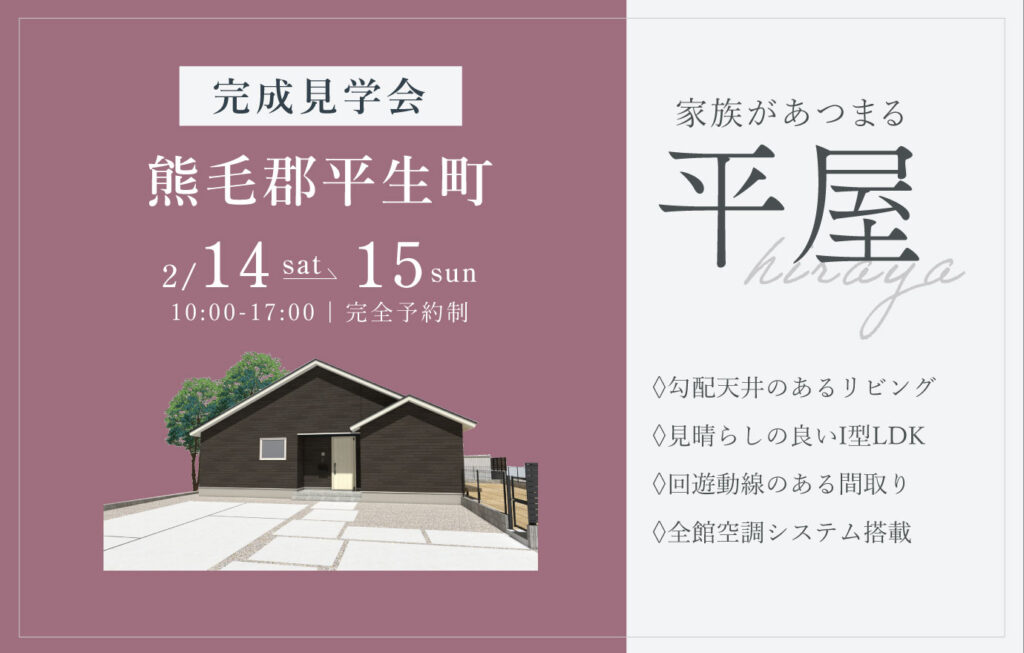 2/14~15 熊毛郡平生町にて【予約制】完成平屋見学会開催!