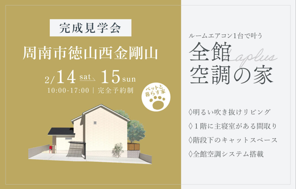 2/14~15 周南市徳山西金剛山にて【予約制】完成見学会開催!