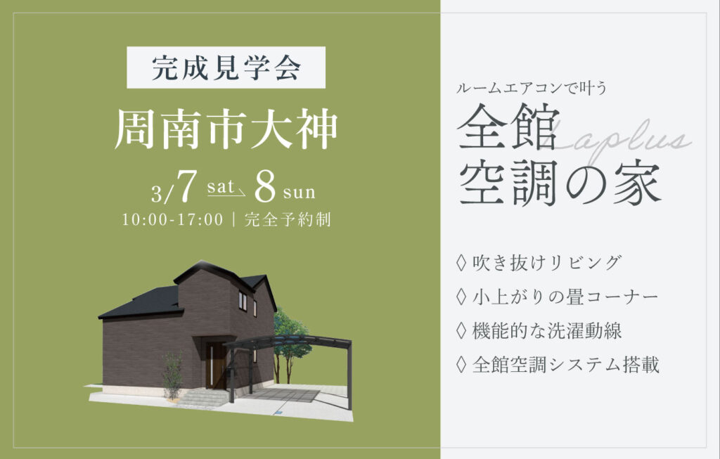 3/7~8 周南市大神にて【予約制】完成見学会開催!