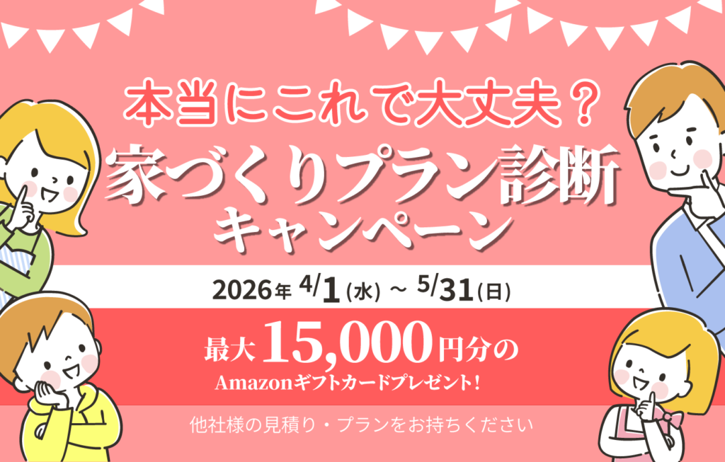 【家づくりプラン診断キャンペーン】ご案内が届いた方限定!今なら最大15,000円分のデジタルギフトカードプレゼント!
