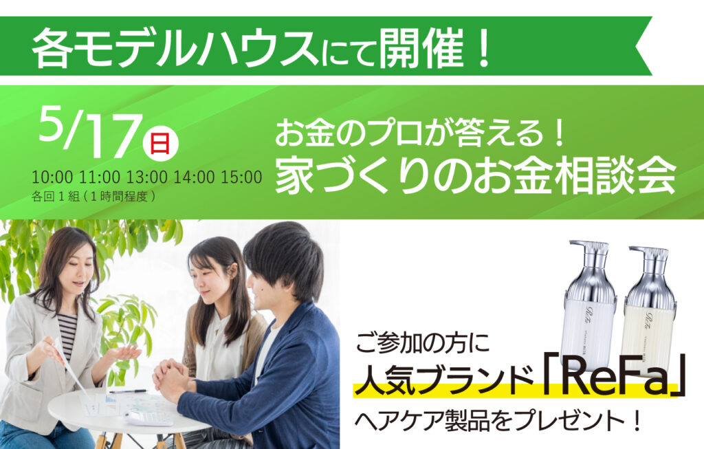 5月16日限定で、家づくりのお金に関する不安を解消できる相談会を開催します。