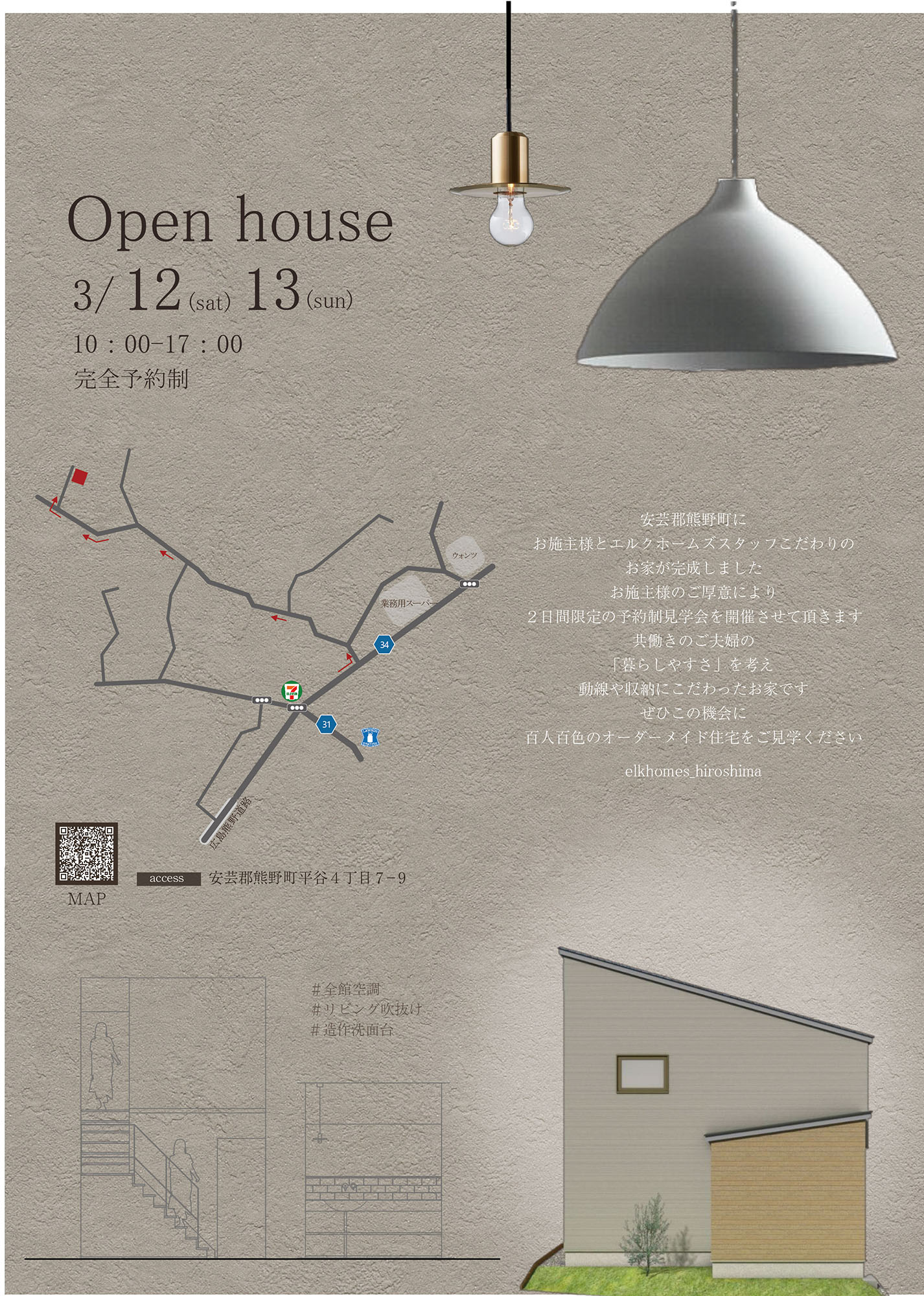 3/12~13 安芸郡熊野町にて【予約制】完成見学会開催!
