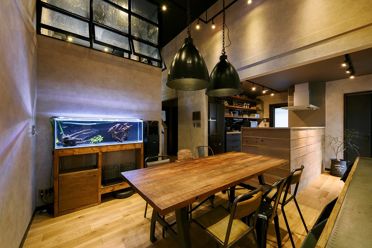 インダストリアルインテリアの無骨さの中にもどこか温かみを感じる空間。