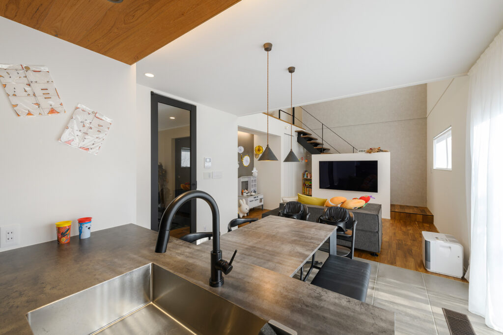 吹き抜けのあるリビングは開放的で、天気の良い日は光が入りとても気持ちいいと喜ばれています。