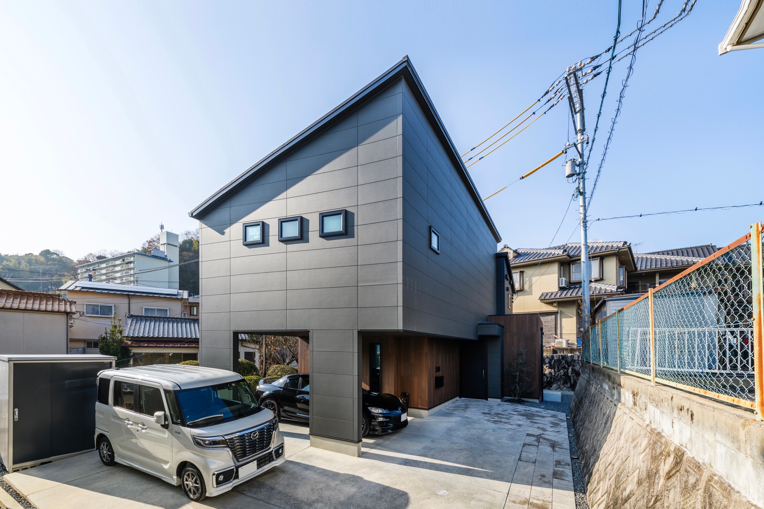 1階の一部を生かし、玄関からそのままつながる配置のガレージ。