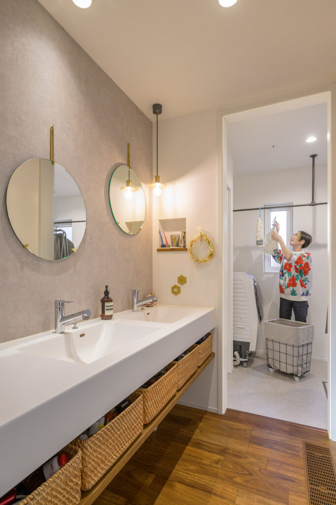 たくさんの人が集まってくつろげる家になるようにと、脱衣所と洗面室を分けたり、玄関を工夫したりと、家族とお客様との動線を分けられる間取りを希望されました。