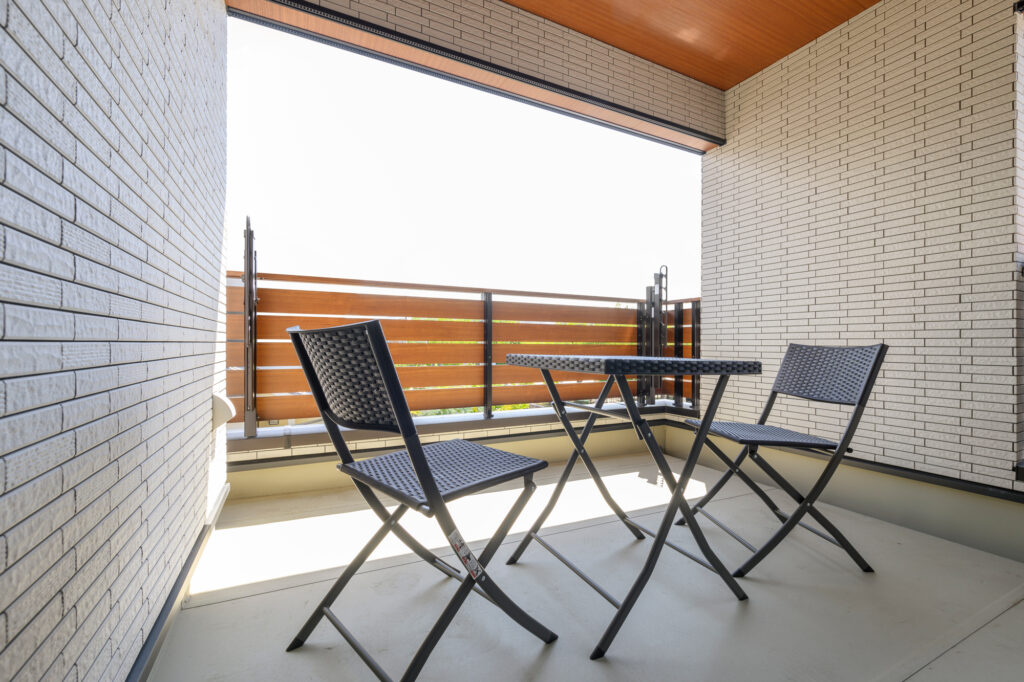 広々としたインナーバルコニーはリビングからすぐに出られる場所に作られました。