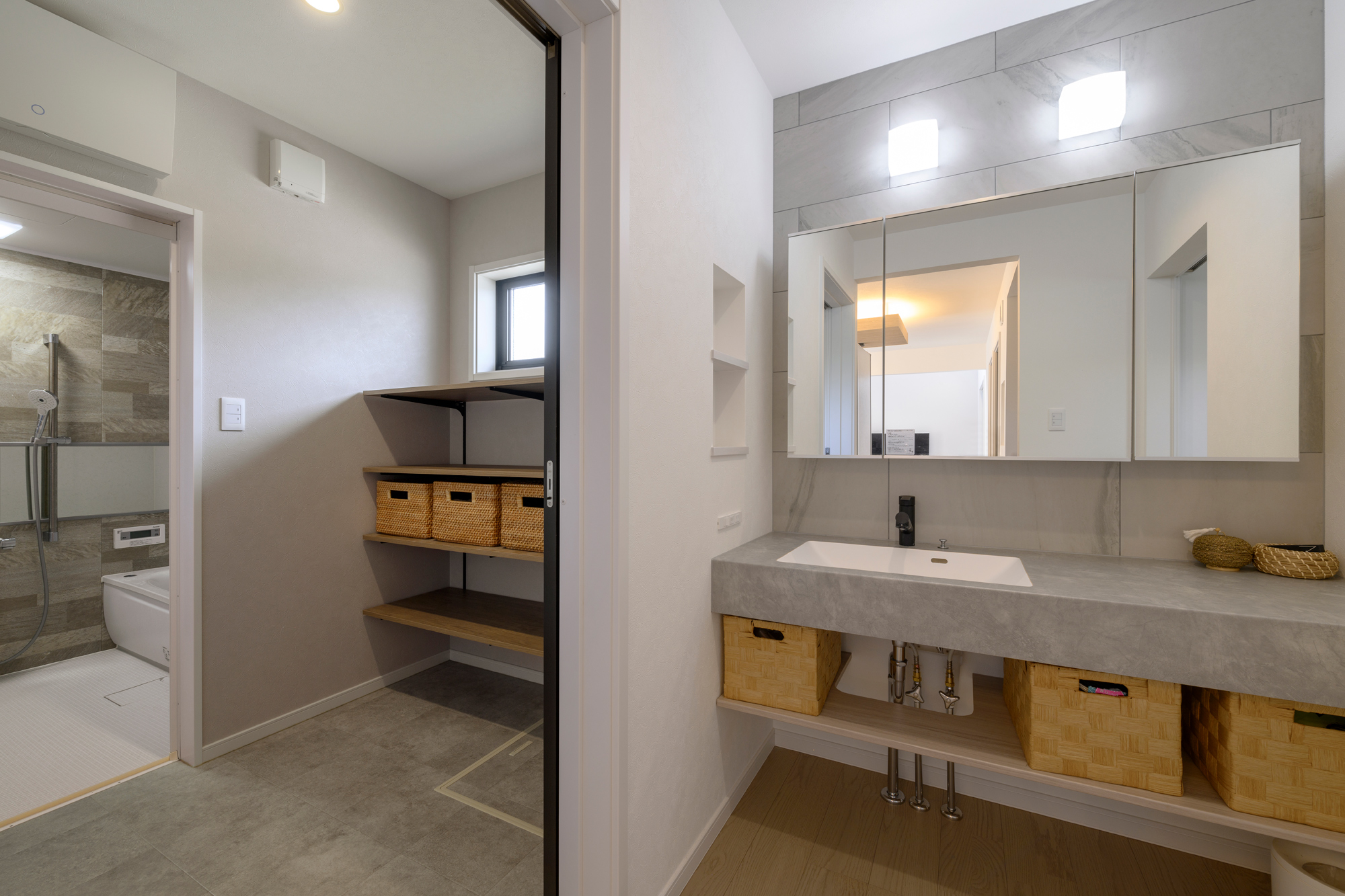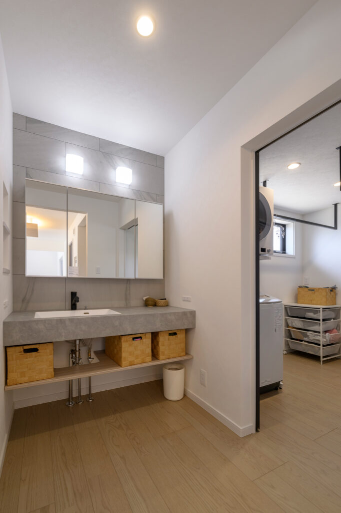 キッチンのすぐ横にはパントリー、後ろには素敵な造作洗面コーナーがあり、脱衣室やランドリールーム、そしてウォークインクローゼットへのアクセスも抜群。
