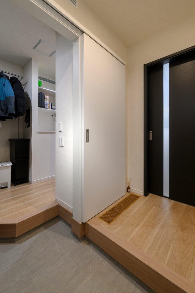 玄関とシューズクロークの間に扉もあるため、来客時はサッと隠せるところも嬉しいポイントです。