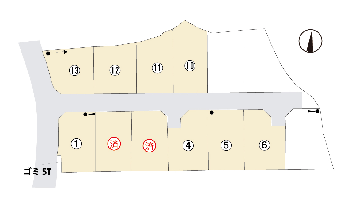■総区画数/13区画 ■引渡し可能年月/即時可能 ■取引条件の有効期限/2025年9月 ■建築条件付/この土地は土地売買契約後3ヶ月以内に当社と住宅の建築請負契約を締結して頂くことを条件として販売します。土地契約後3ヶ月以内にこの請負契約が成立しない場合には、土地売買契約は白紙となり、売主は土地代金を無条件で返還し、土地購入者はその土地を原状回復の上、売主に引き渡して頂く必要があります。 |