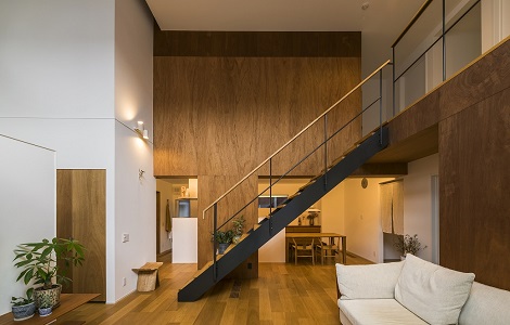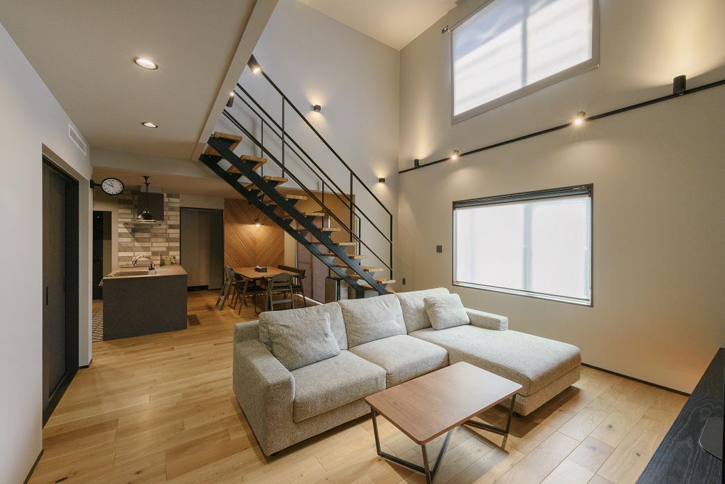 リビングに階段を設置し、家族とのコミュニケーションも充実させることができ、リビングは家族が集まる安らぎの場としてお気に入りの場所となること間違いありません。 -