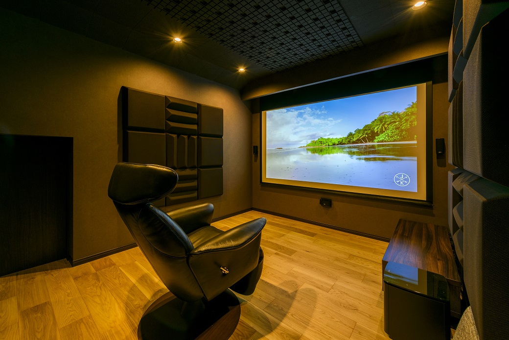 お客様の最大のこだわりである防音機能付きのシアタールームを設置。