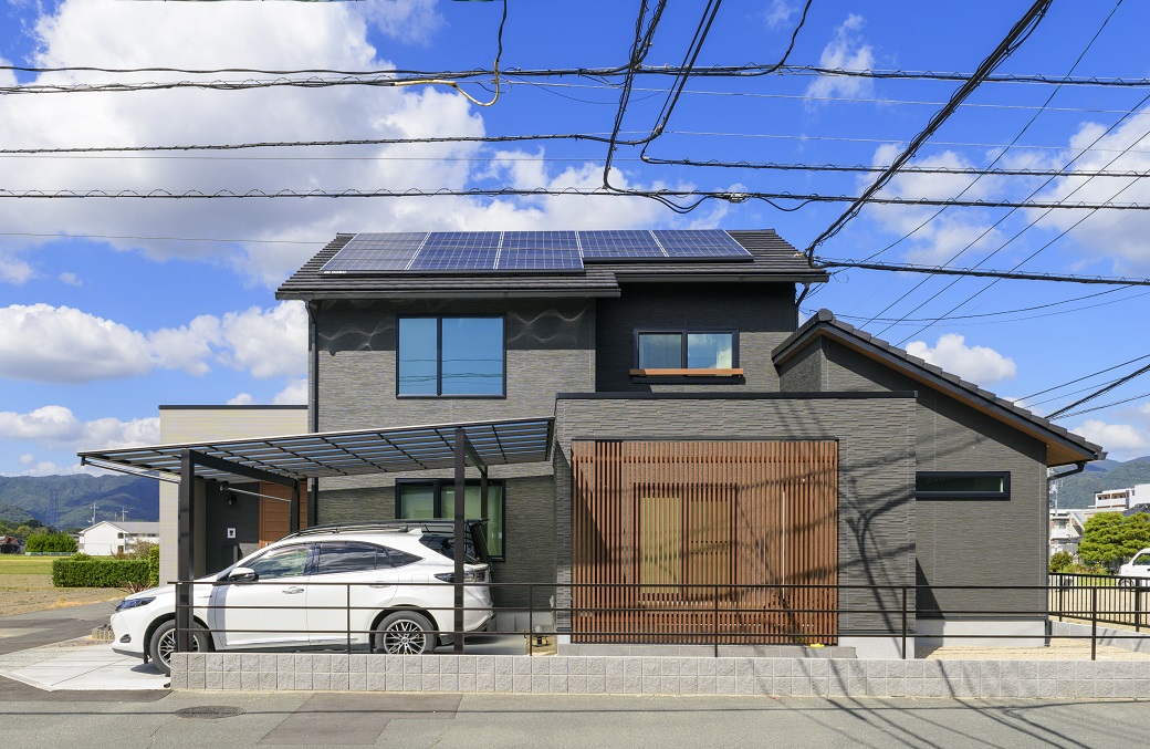 お客様の要望に合わせたスタイリッシュかつ落ち着いた色合いを採用したナチュラルモダンな外観をご提案。