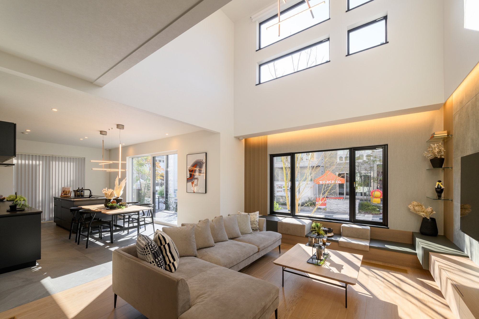 エアコン1台で家じゅう快適な全館空調を搭載し、暑い夏も寒い冬も快適にお過ごしいただけます。