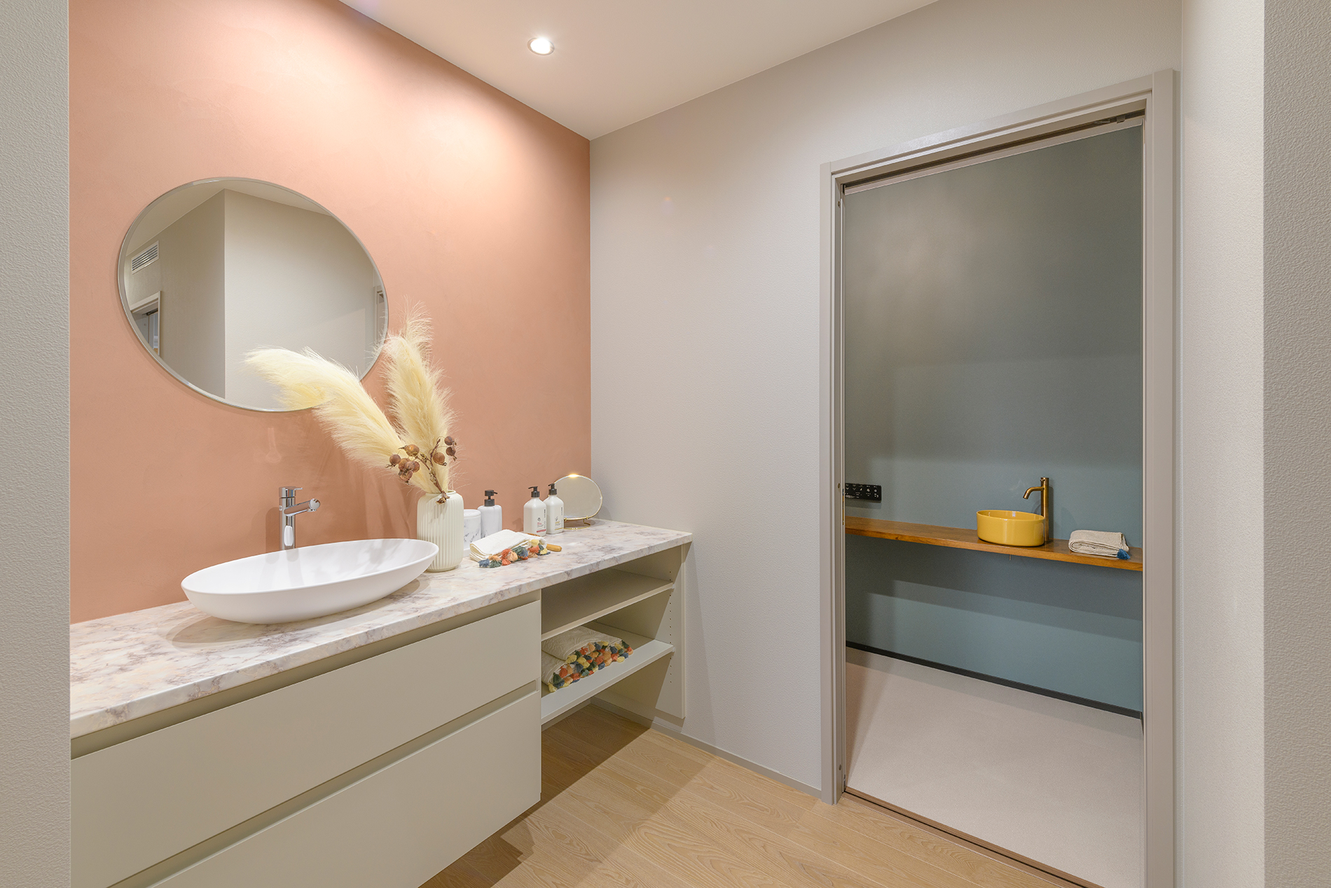 ゆとりのある空間と便利な動線とを備えた新しいモデルハウスです。