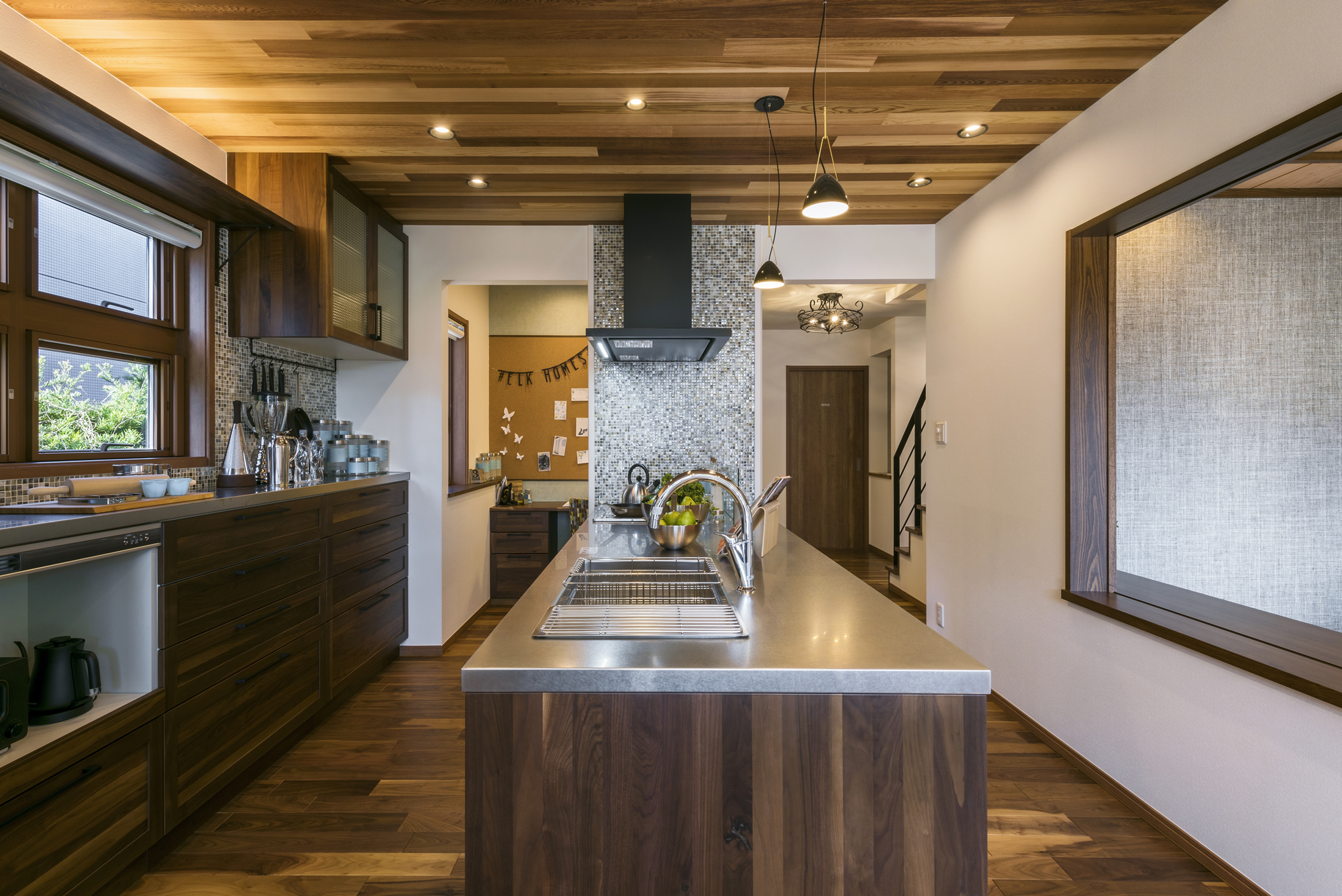 木目の美しい天然素材の扉とフローリング。自然素材同士を組み合わせました。水回りもキッチンの隣にあり、家事動線ばっちりです。