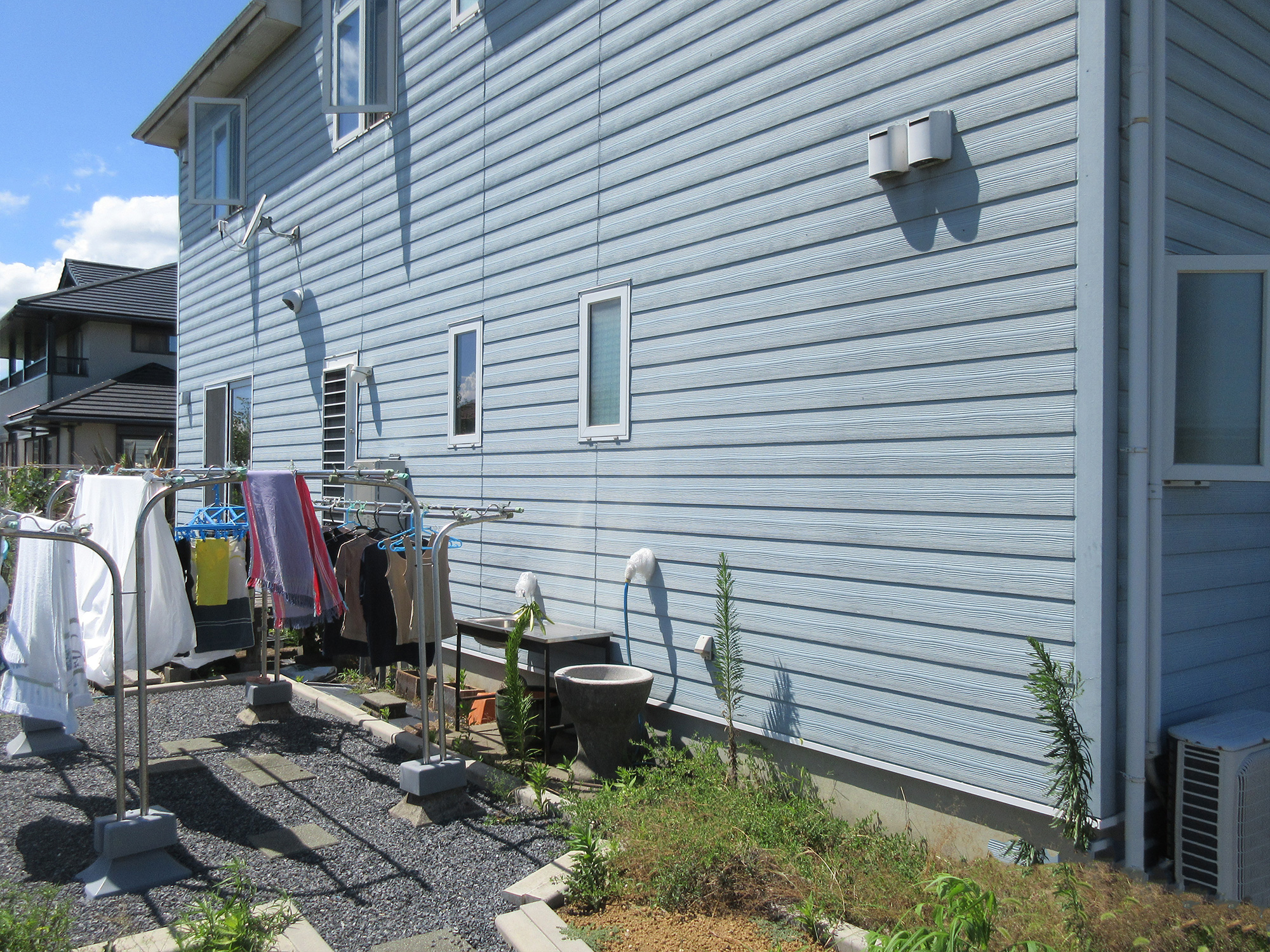 以前は屋根のない物干し場でしたが、四方を囲って倉庫兼用で使える差し掛けとなりました。