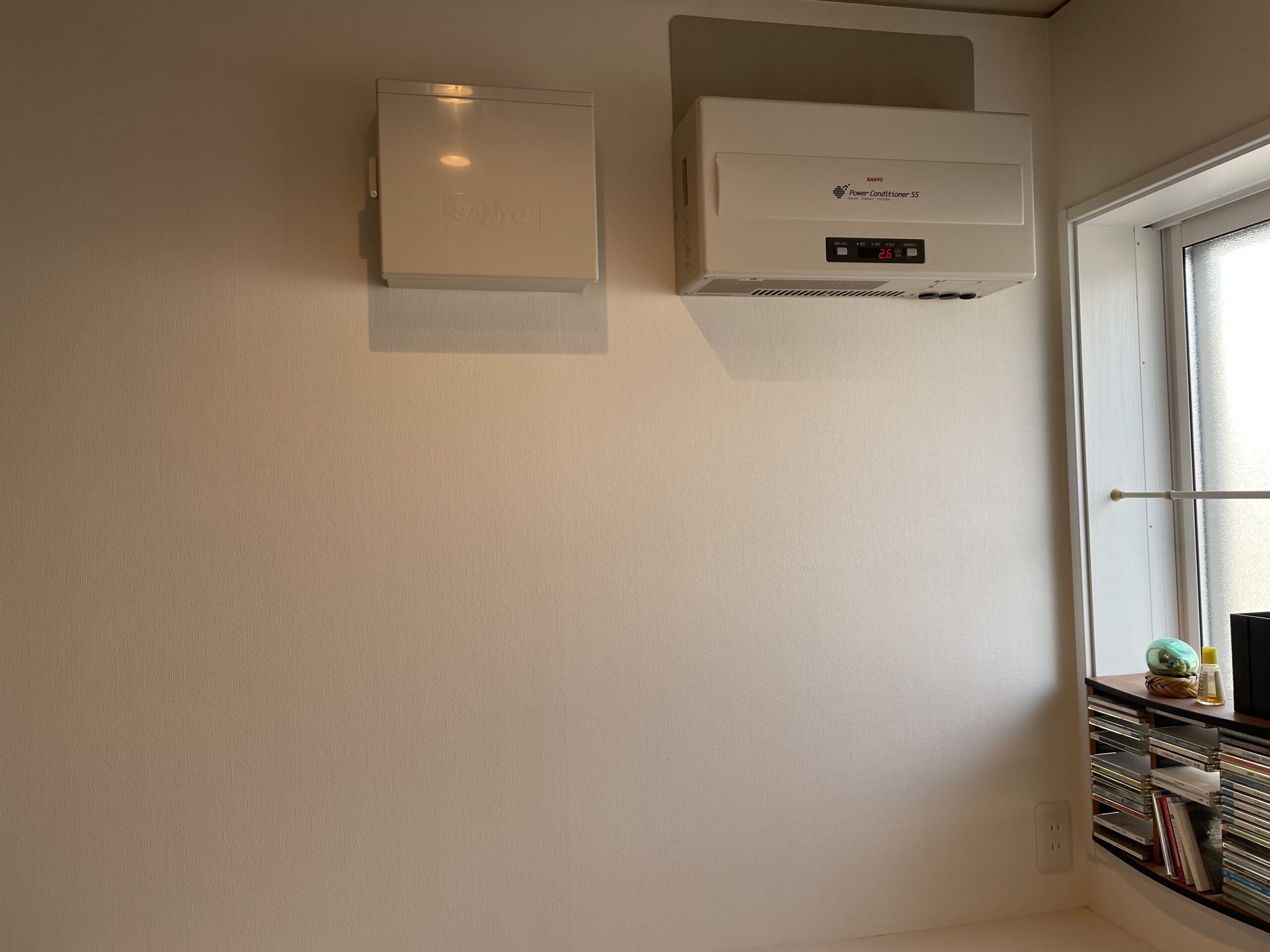 蓄電池は生活動線の妨げにならないよう納戸に設置し、これまでパワーコンディショナーを設置していた2階ホールの壁面は化粧パネル仕上げとしました。